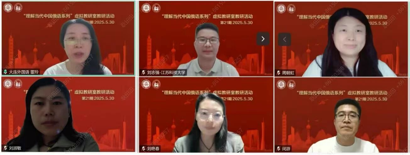 2025年5月30日19点,由大连外国语大学博士生导师刘宏教授主持的教育部“理解当代中国俄语系列”虚拟教研室第二十一期教研活动在云端成功举办。来自虚拟教研室成员高校和国内其他高校的教师以及我校俄语学院师生共计90余人参加了本次教研活动。