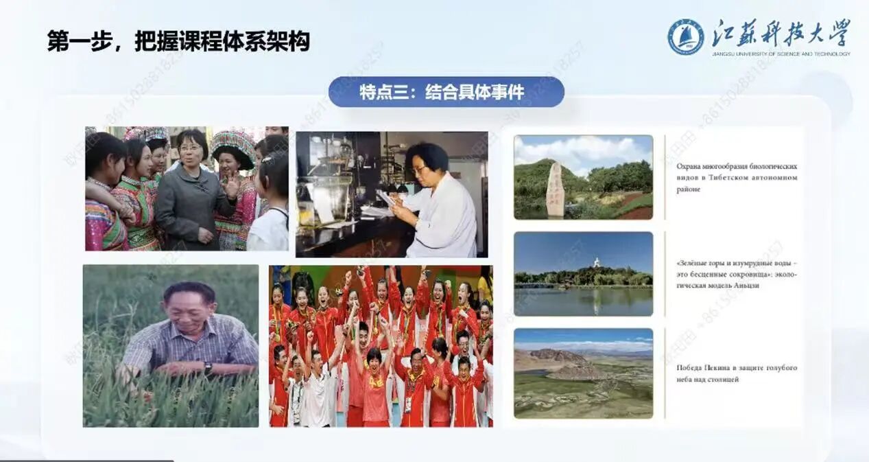 刘志强老师深入阐述教材核心理念,将习近平新时代中国特色社会主义思想与俄语听说读写能力培养紧密结合,旨在让学生既能掌握语言技能,又能深入理解中国发展成就,从跨文化视角阐释中国道路与智慧。他介绍了江苏科技大学使用“理解当代中国俄语系列”教材的整体框架和思路,重点讲解《俄语演讲教程》的应用。刘老师强调,该教材内容丰富,覆盖政治、经济、社会、文化、科技等领域,通过“一带一路”倡议、脱贫攻坚等专题模块,助力学生多维度把握当代中国发展逻辑。他还讲解了教学特色,即通过党建与业务融合、以赛促教、研学双向驱动、培育省创项目、实践反哺教学等举措,借助多样化教学活动与实践平台,提升学生的语言能力及跨文化交际能力。此外,刘老师分享了参加外研社“教学之星”大赛的经历,指出教学竞赛对教师专业成长的重要性,并鼓励其他教师积极参与,提升教学水平。