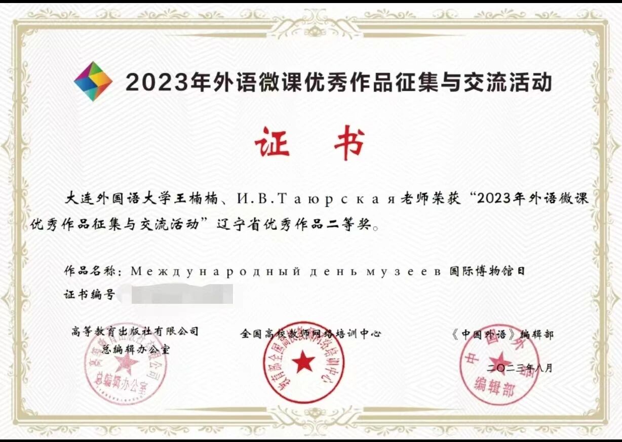 2018年国家级教学成果奖二等奖获奖证书《服务“一带一路”建设“俄语+区域学”人才培养模式研究与实践》