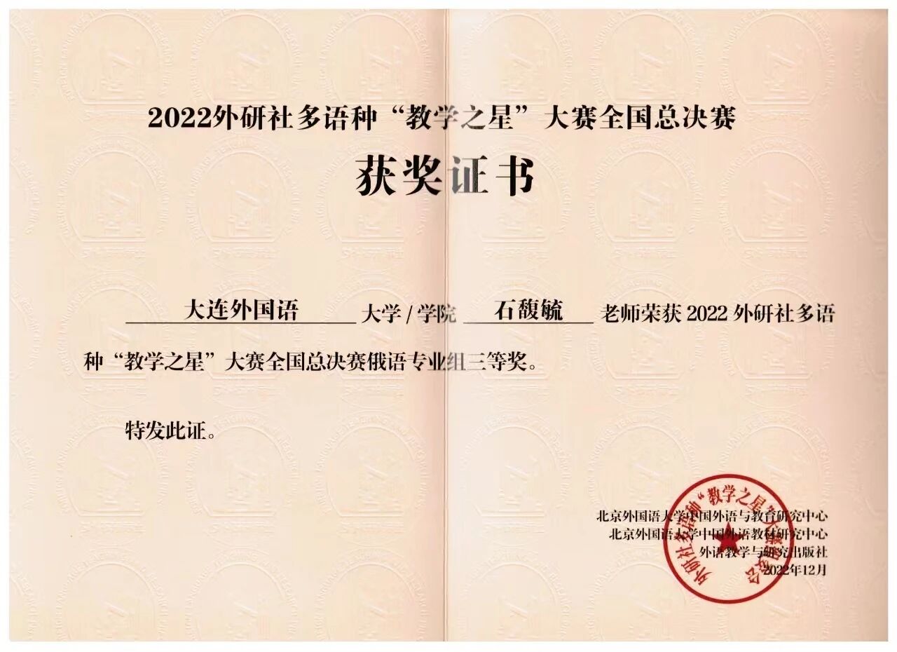 俄语学院教师李瑞莲在2018外研社多语种“教学之星”大赛全国总决赛中获得俄语组亚军